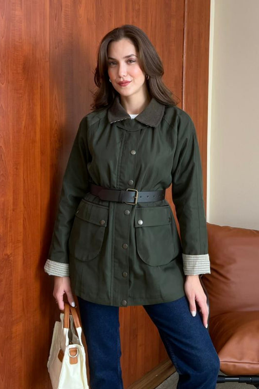 Gold Düğmeli Beli Büzgülü Yelek ve Geniş Paça Pantolonlu Takım - Yeşil