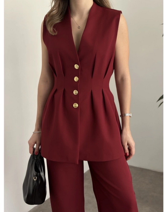 70% İNDİRİMGold Düğmeli Belden Oturtmalı Takım - Bordo