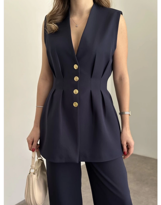 70% İNDİRİMGold Düğmeli Belden Oturtmalı Takım - Lacivert