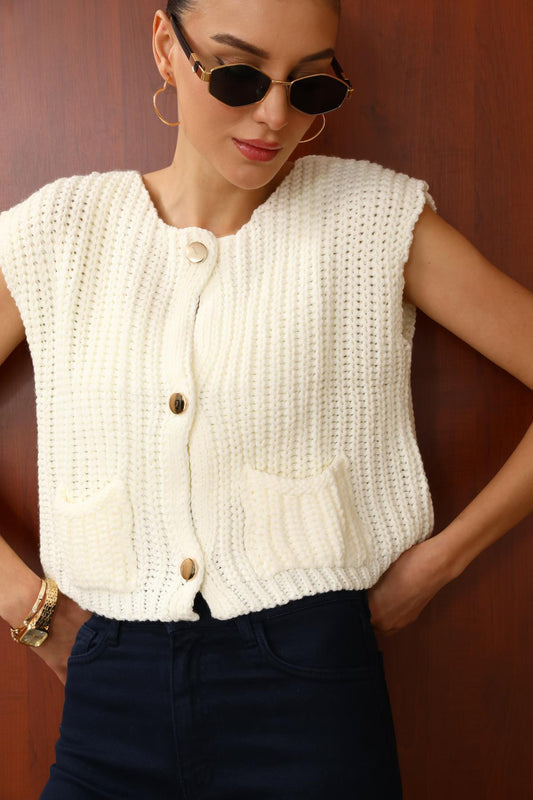 70% İNDİRİMGold Düğmeli Yelek - Beyaz