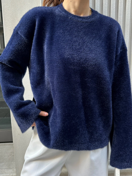 Oversize Yumuşak Dokulu Sakallı Triko Kazak - Lacivert