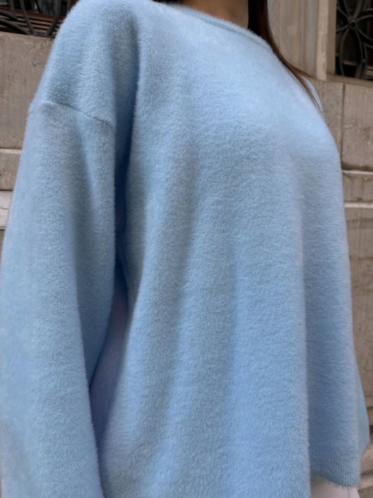 Oversize Bisiklet Yaka Yumuşak Dokulu Triko Kazak - Mavi