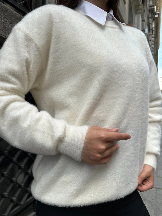 Oversize Yumuşak Dokulu Kazak - Beyaz