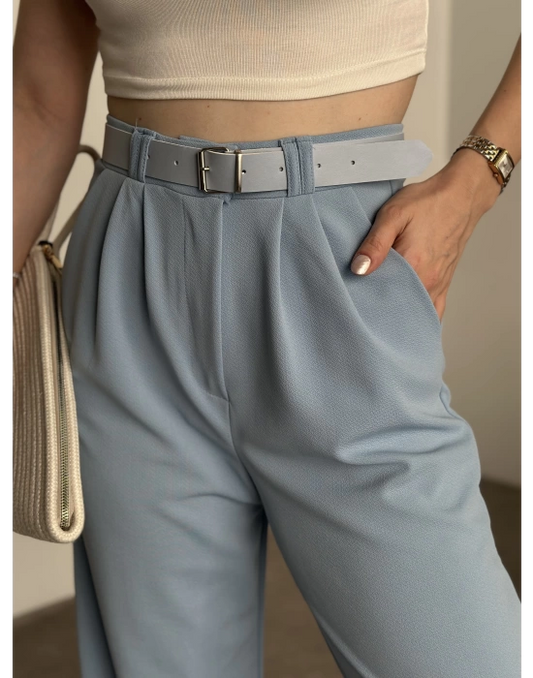 Likralı Kemerli Pantolon - Bebek Mavisi