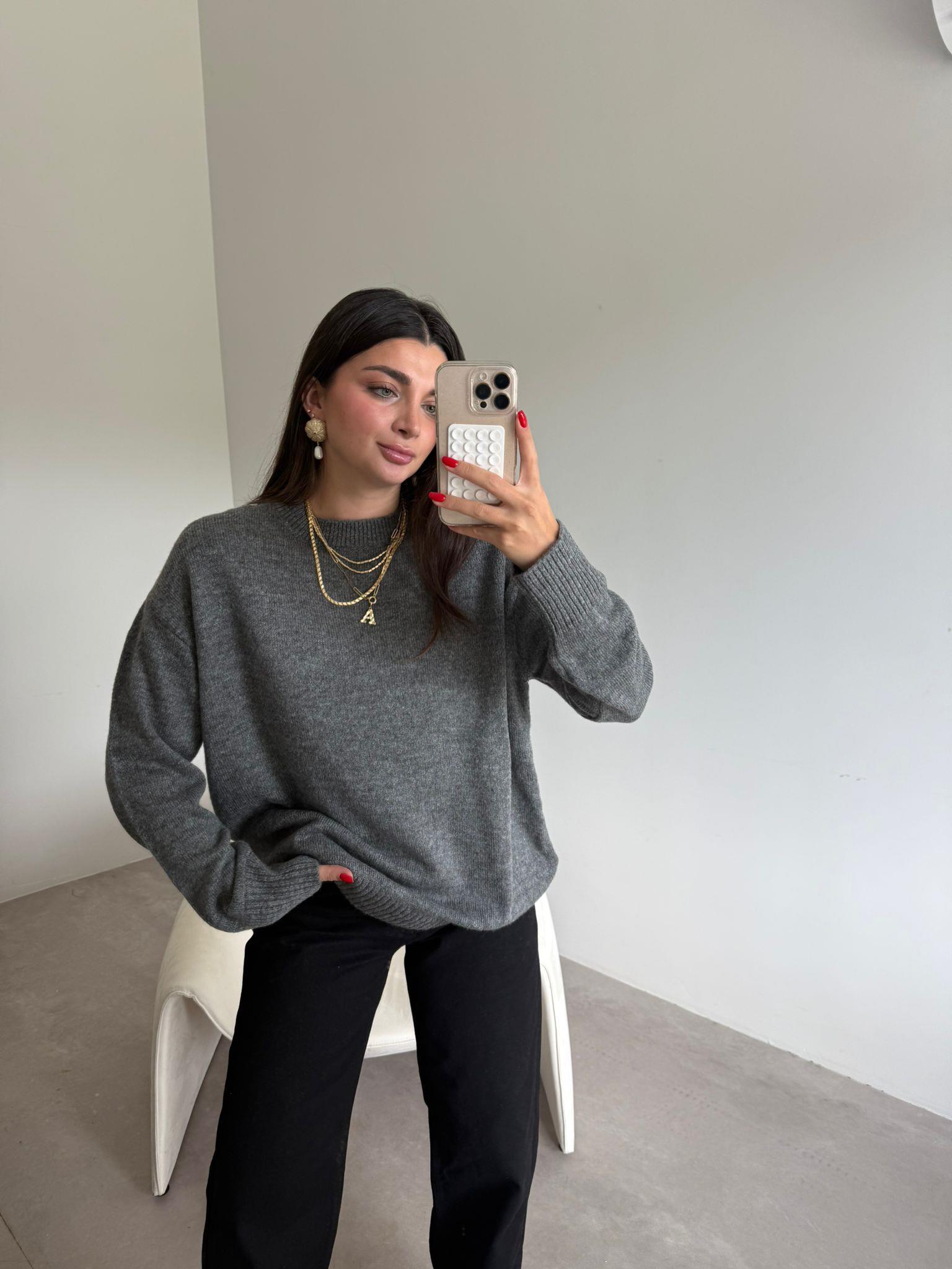 Bisiklet Yaka Oversize Kazak - Gri