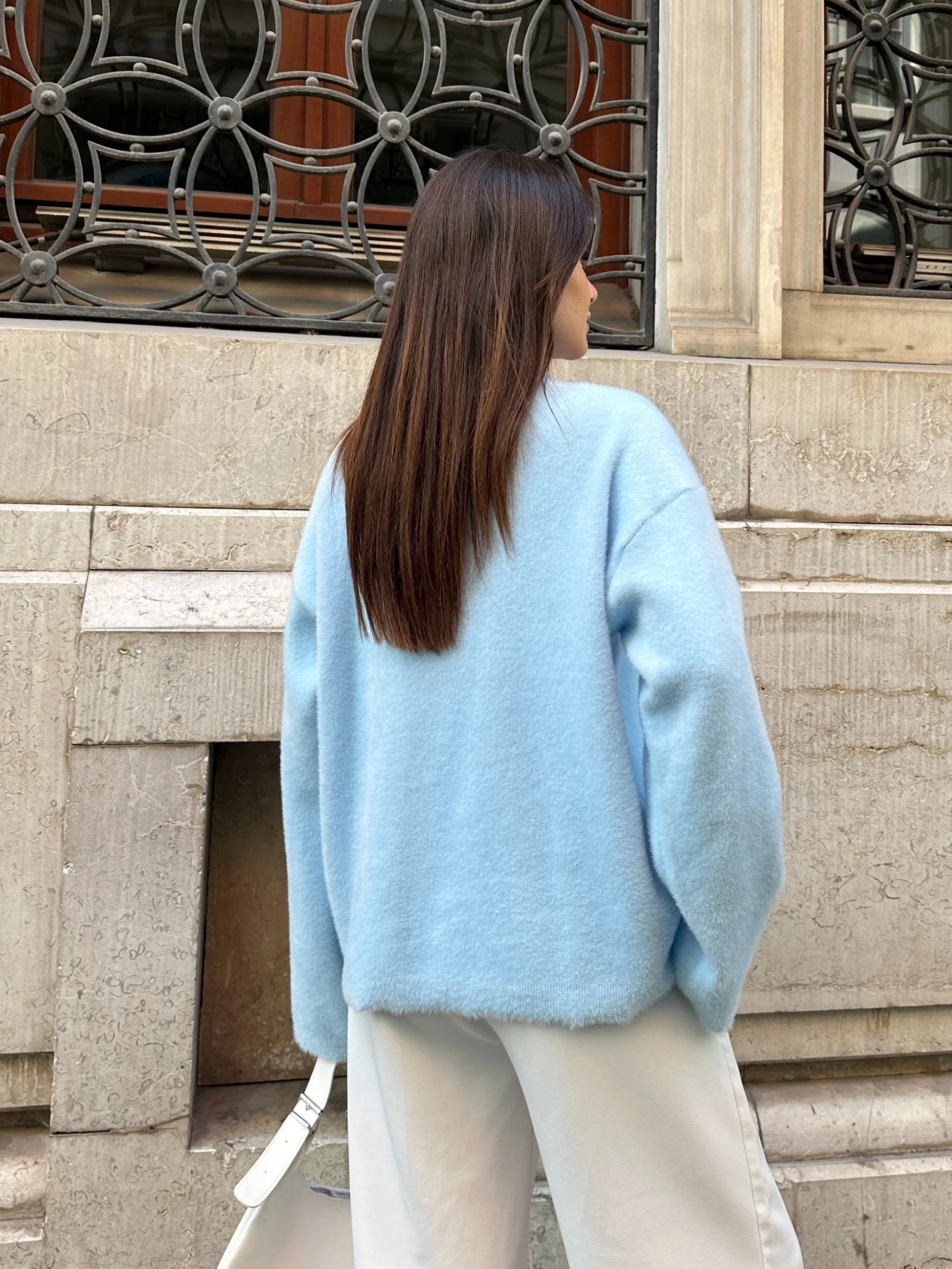 Oversize Bisiklet Yaka Yumuşak Dokulu Triko Kazak - Mavi