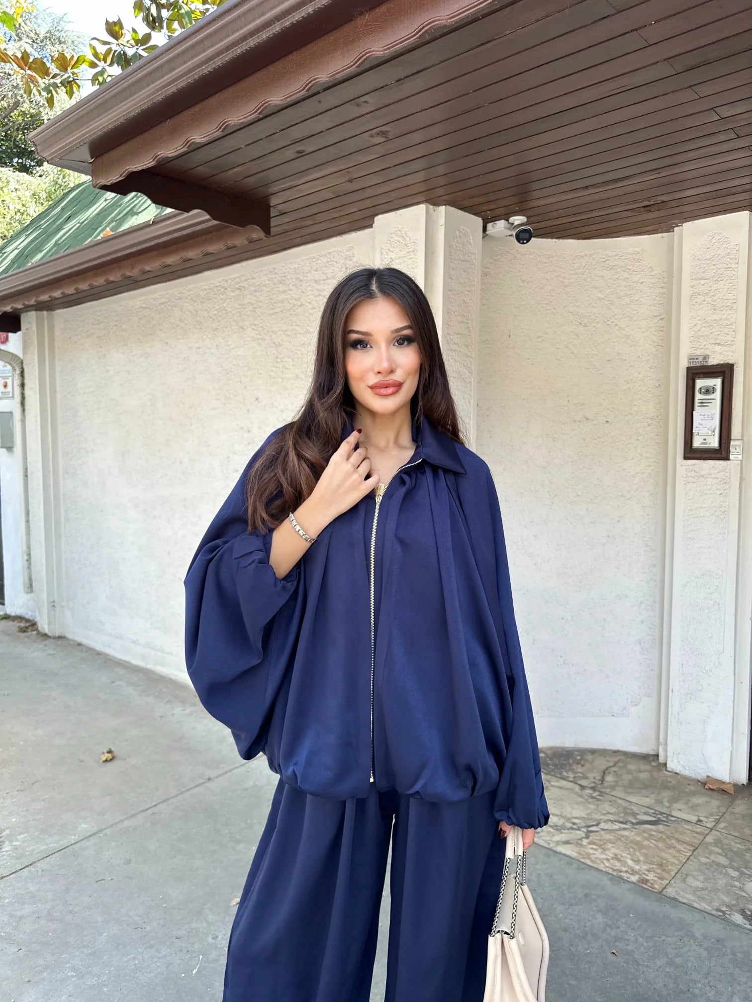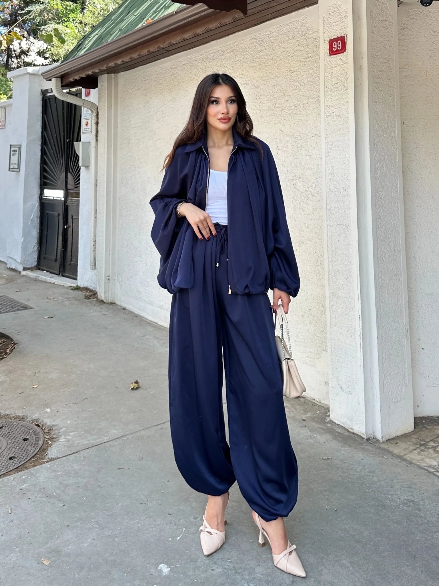 Pileli Bumber Ceket Pantolon Takım - Lacivert