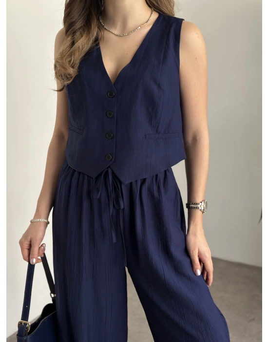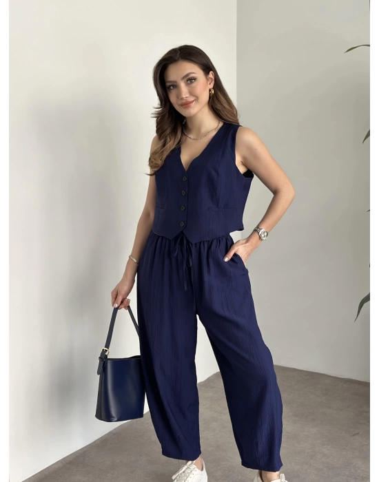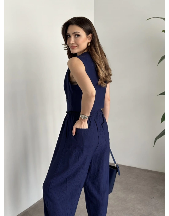 Şalvar Kesim Pantolon Yelekli Takım - Lacivert